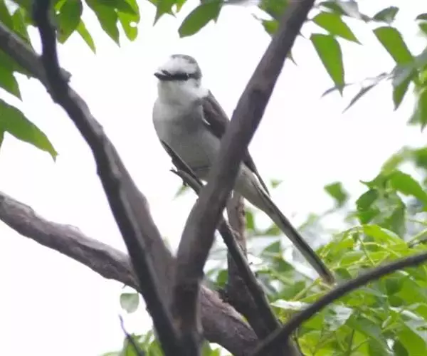 灰山椒鸟(学名:Pericrocotus divaricatus):体长18-20厘米。上体灰色或石板灰色,两翅和尾黑色,翅上具斜行白色翼斑,外侧尾羽先端白色。前额、头顶前部、颈侧和下体均白色,具黑色贯眼纹。雄鸟头顶后部至后颈黑色,雌鸟头顶后部和上体均为灰色。