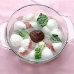 墨鱼丸色泽洁白,富有弹性,入口爽脆,味道鲜美,宴席菜和家常菜均可适用。墨鱼丸是海南和潮汕地区传统名菜。潮汕人常称为墨斗丸。用新鲜墨鱼和猪肥肉配制而成。曾在海南及全国烹饪大赛中获奖。