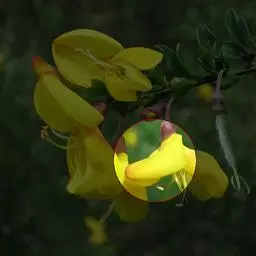 花梗长6-15毫米,密被柔毛,关节在中上部;花萼管状钟形,长8-9毫米,宽4-6毫米,密被伏贴短柔毛,萼齿三角形或披针状三角形;花冠长20-23毫米,旗瓣宽卵形或近圆形,先端截平而稍凹,宽约16毫米,具短瓣柄,翼瓣瓣柄细窄,稍短于瓣片,耳短小,齿状,龙骨瓣具长瓣柄,耳极短;子房披针形,无毛。荚果扁,披针形,长2-2.5厘米,宽6-7毫米,有时被疏柔毛。花期5月,果期6月。