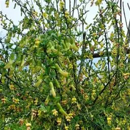 柠条锦鸡儿(学名:Caragana korshinskii Kom.)是豆科锦鸡儿属植物,灌木,有时小乔状,高1-4米;老枝金黄色,有光泽;嫩枝被白色柔毛。羽状复叶有6-8对小叶;托叶宿存;叶轴脱落;小叶披针形或狭长圆形,先端锐尖或稍钝,有刺尖,灰绿色。花梗密被柔毛,关节在中上部;花萼管状钟形,密被伏贴短柔毛,萼齿三角形或披针状三角形;花冠旗瓣宽卵形或近圆形,稍短于瓣片,耳短小,耳极短;子房披针形,无毛。荚果扁,披针形,有时被疏柔毛。花期5月,果期6月。