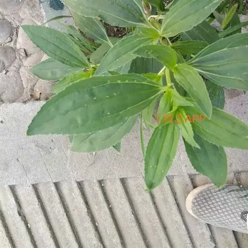 叶片椭圆形或椭圆状披针形,长5-10厘米,宽2-4厘米,基部渐狭成短柄状,微合生,半抱茎,顶端急尖,边缘粗糙,两面均无毛,具3或5基出脉。