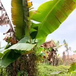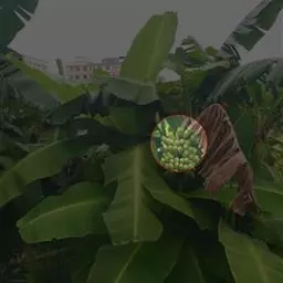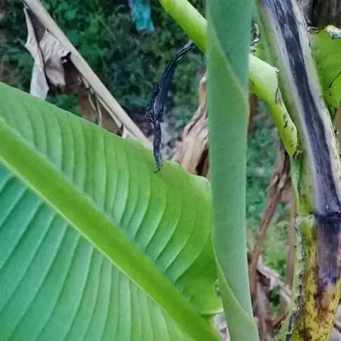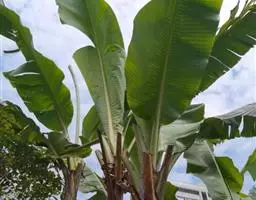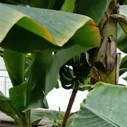 香蕉’),芭蕉科芭蕉属多年生草本植物,植株丛生,有匐匍茎;假茎浓绿有黑色斑点;叶片长圆形,…