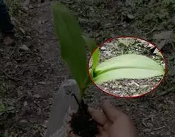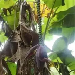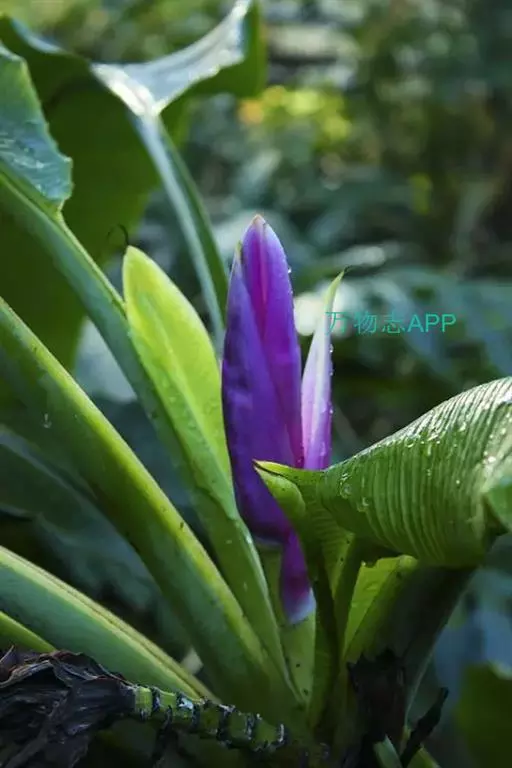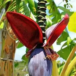 紫苞芭蕉形如一枝亭亭玉立、含苞待放的荷花,但却开在高高的芭蕉树上,这就是紫苞芭蕉。