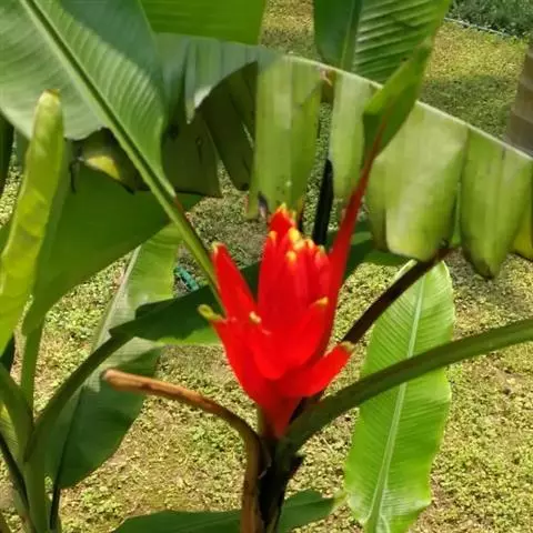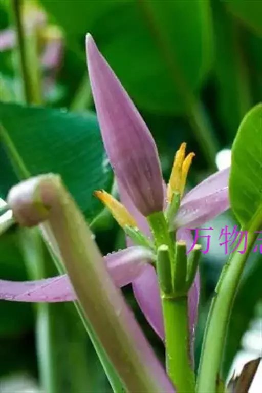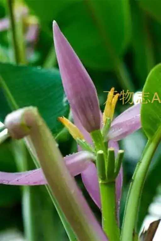 因其花序末端层层包覆的苞片酷似莲花,因此又叫莲花蕉。为芭蕉科(Musaceae)芭蕉属多年生草本植物,假茎细长,高达1—3m,叶子长椭圆形,长可达2m,宽达35cm。