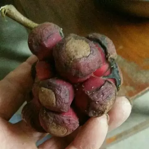 紫花含笑幼苗期未见病虫害发生。苗木移植于农耕地,5~6月蛴螬啃食地表以下5~200px处根茎的皮部,造成苗木死亡,用喷雾器向根茎部注射锌硫磷500~600mg/kg溶液4~5s,可有效灭虫。在试验采种园圃(采挖野生植株定植于2002年)中,2007年首次发现盾蝽科(ScuteUeridae)一种昆虫幼虫,于9月上中旬集中于母树果序为害幼果。幼果果皮及种皮部分被啃食,影响母树成实;用甲氰菊酯20%乳油2000~2500倍液喷雾,防治效果良好。