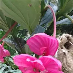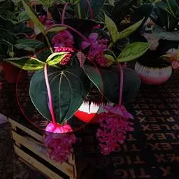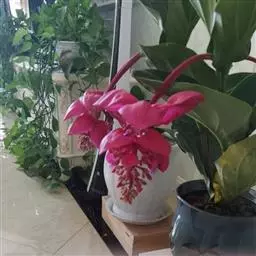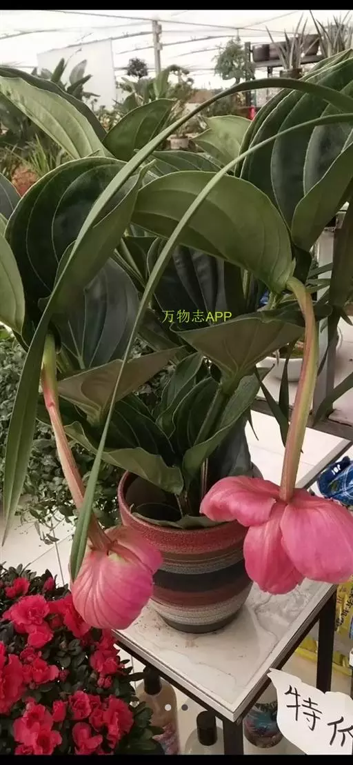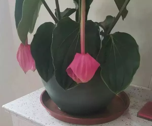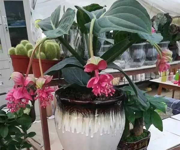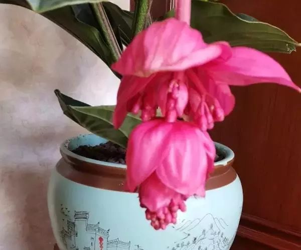 粉苞酸脚杆花株形优美,灰绿色叶片宽大粗犷,粉红色花序下垂,是野牡丹科花卉中属最豪华美丽的一种。盆栽粉苞酸脚杆花最适合宾馆、厅堂、商场橱窗、别墅客室中摆设。