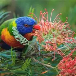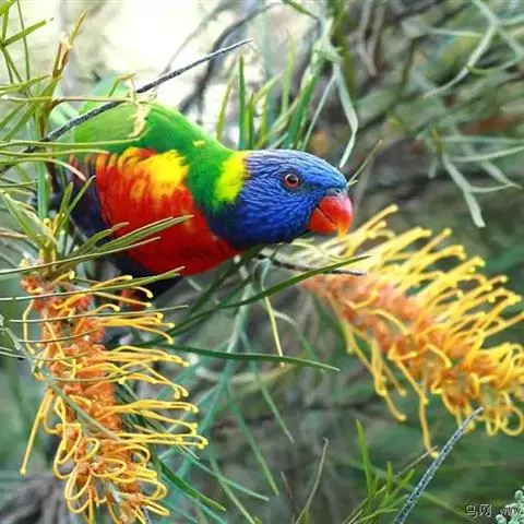 虹彩吸蜜鹦鹉共有21个亚种,体长25-30厘米,羽色鲜艳。体重120-130克。嘴为桔红色,脚为蓝…