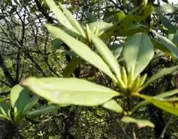 灰背杜鹃:常绿小灌木,高0.25-1米。茎直立,幼枝细长,呈扫帚状,黄棕色,密被棕黄褐色鳞片。叶芽…