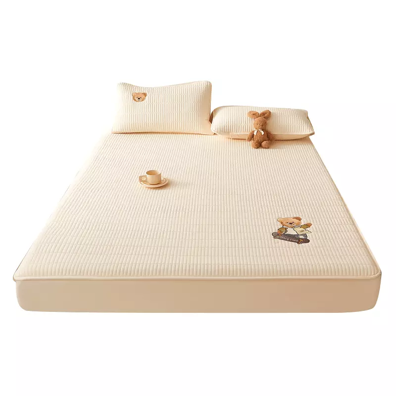 应考虑顶部面积加上床褥的厚度,以及下垂幅度,有时还应留出塞进枕头的面积。