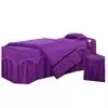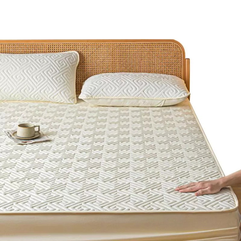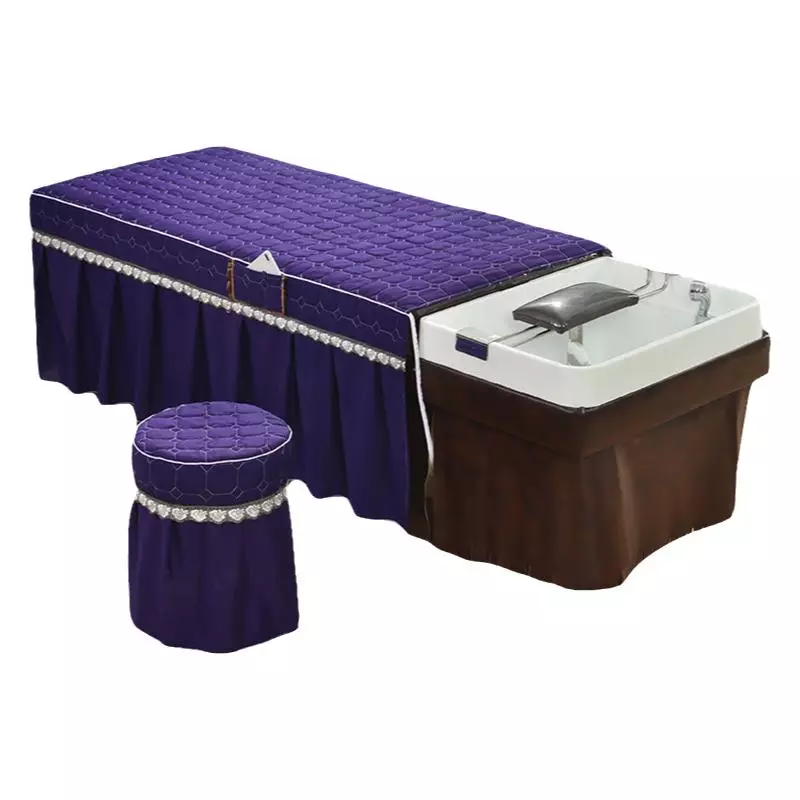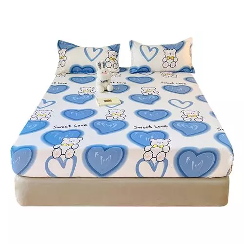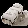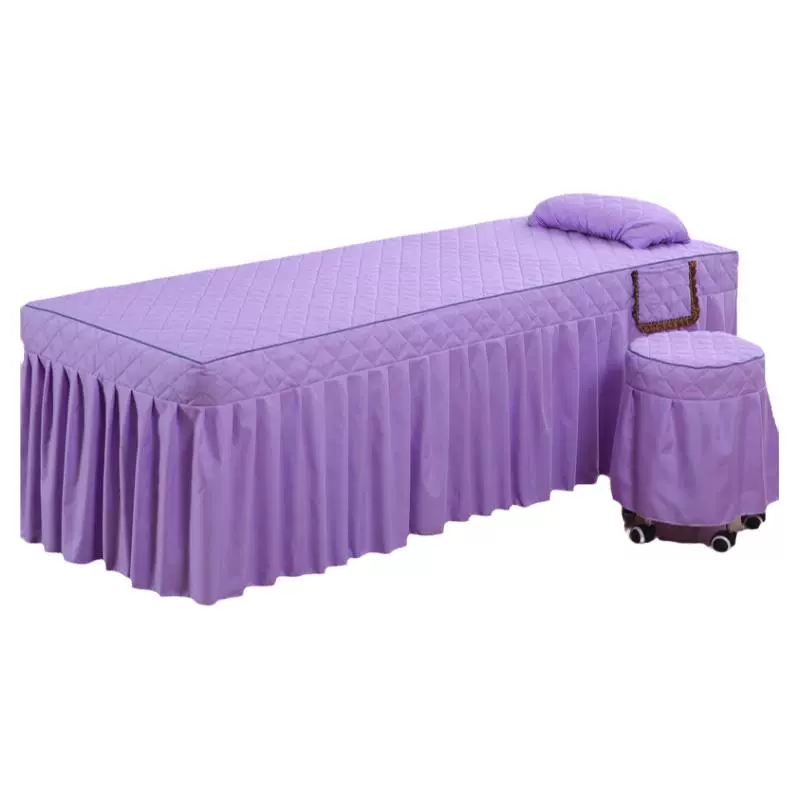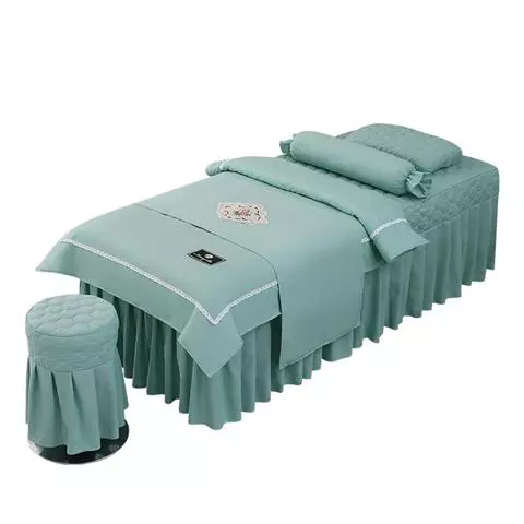 织锦床罩属锦类丝织物,色彩瑰丽、图案精细,具有民族特色,是一种高级床罩。绉地床罩又称泡泡纱床罩,用机织彩条泡泡纱制成,手感柔软。簇绒床罩又称绣绒床罩,可用纯棉、腈纶、丙纶等作原料,用簇绒机将有色纱线固定在底布上,在底布的反面形成一定长度的绒缀,随后按描绘在底布上的花纹重复簇绒,再经缝边、刷绒等整理加工。为避免绒头落毛还可进行湿整理。簇绒床罩的缝边整理是先用多股线四面锁边,随后将床罩的三面用排须装饰,排须的颜色应与床罩的基础色一致。