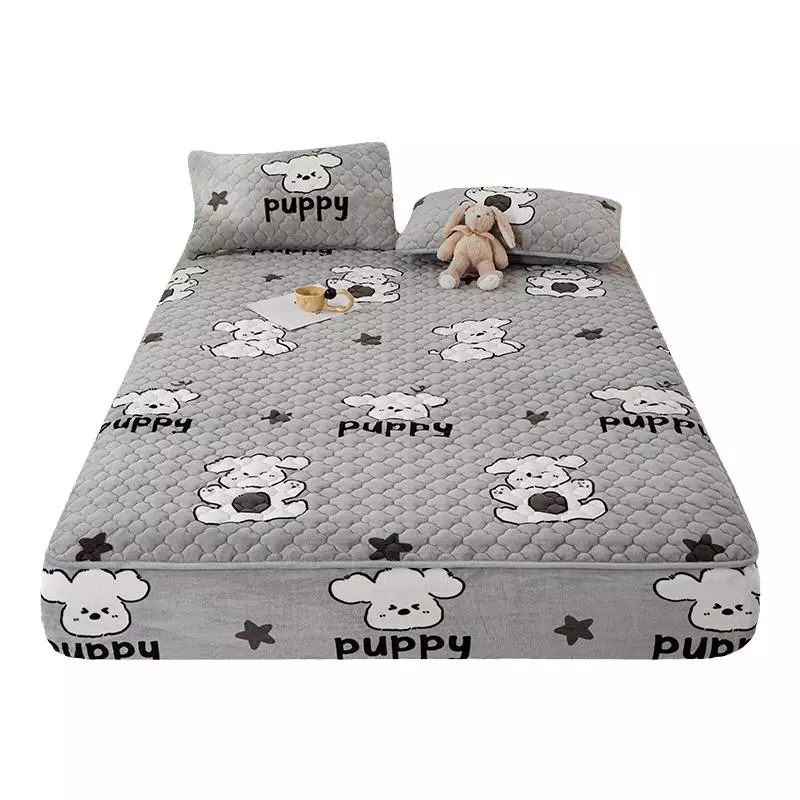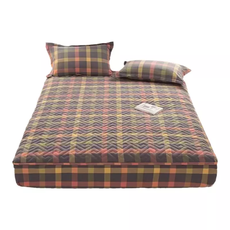 衬棉床罩由被面、衬里和填充料(化纤絮片)组合,经缝纫而成薄型被褥床罩,有轻、软、滑的特点。床罩的图案设计根据整个房间的陈设色调运筹、把握。