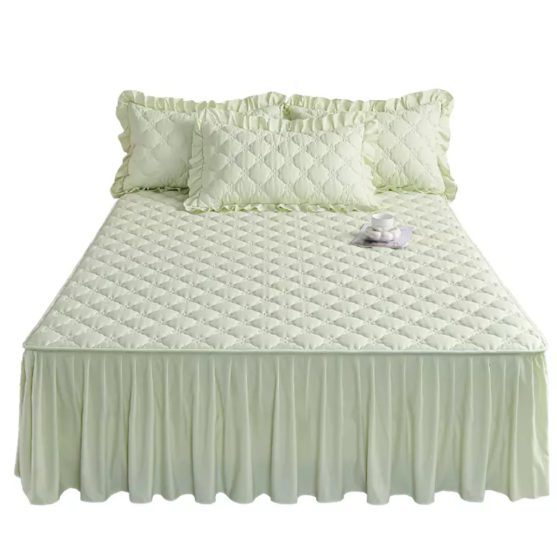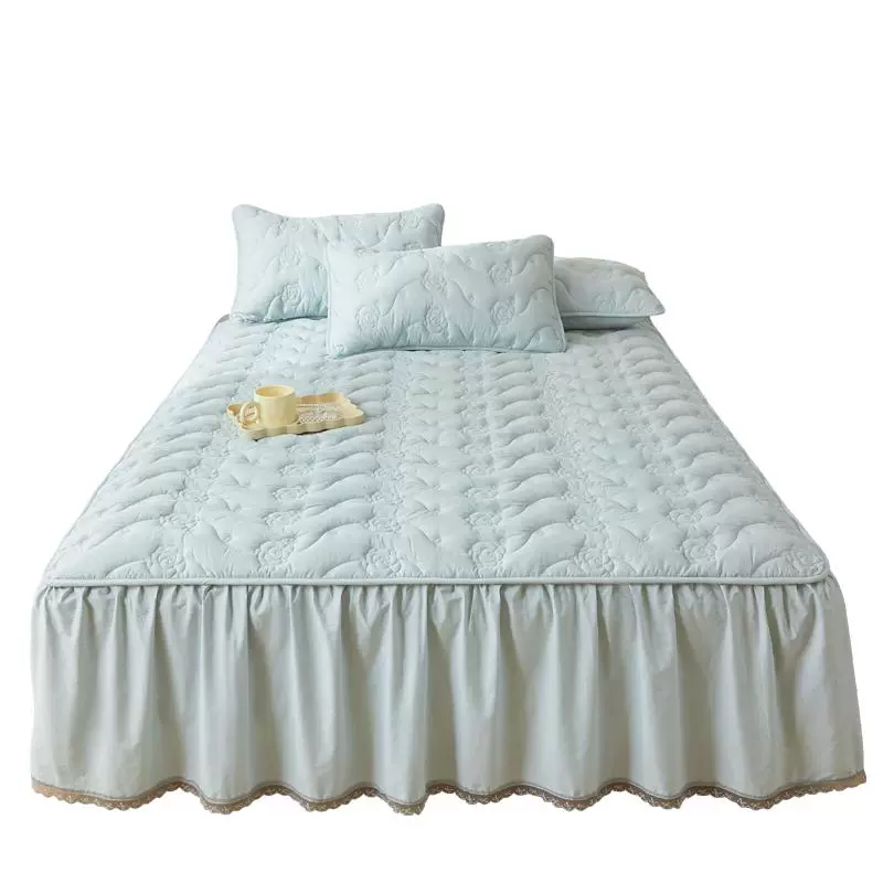 床罩可分为三类:高档豪华型,面料高级,做工精细,图案精美,适合新婚或收入高的家 庭;中楼华丽型,面料同高档一样,只是做工简单些,并不影响使用,适合一般家庭;低档实用型,适合于中、老年家庭。可以根据自己的实际情况决定购买。