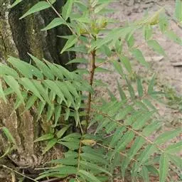 落叶乔木,高达20米。树皮黄褐色或灰褐色。小 梣叶槭 枝圆柱形,无毛,当年生枝绿色,多年生枝黄褐色。冬芽小,鳞片2,镊合状排列。羽状复叶,长10-25厘米,有3-7(稀9)枚小叶;小叶纸质,卵形或椭圆状披针形,长8-10厘米,宽2-4厘米,先端渐尖,基部钝一形或阔楔形,边缘常有3-5个粗锯齿,稀全缘,中小叶的小叶柄长3-4厘米,侧生小叶的小叶柄长3-5毫米,上面深绿色,无毛,下面淡绿色,除脉腋有丛毛外其余部分无毛;主脉和5-7对侧脉均在下面显著;叶柄长5 7厘米,嫩时有稀疏的短柔毛淇后无毛。