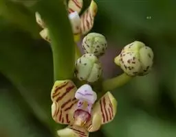 苞舌兰:假鳞茎扁球形,通常粗1-2.5厘米,被革质鳞片状鞘,顶生1-3枚叶。叶带状或狭披针形,…