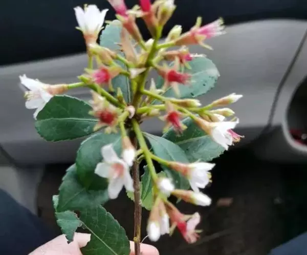 石斑木恒春变种Rhaphiolepisindica(L.) Lindl. ex Ker var.hiiranensis(Kanehira) Li.叶片长圆形至倒披针形,长4-5厘米,宽1.5-2厘米,先端圆钝,边缘上半部有锯齿;花序具少数花,疏生柔毛;苞片披针形,长约4毫米,花梗长7-15毫米,萼片长约3毫米。产台湾(恒春半岛)。