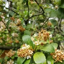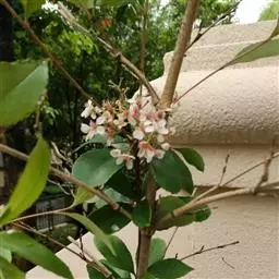 石斑木,别名:春花、雷公树、白杏花、报春花、车轮梅,拉丁文名:Rhaphiolepis indica.原产于中国及印度,主要分布在华东、华南至西南;中亚热带常绿、落叶阔叶林区;南亚热带常绿阔叶林区;热带季雨林及雨林区。其为亚热带树种。花朵美丽,枝叶密生,能形成圆形紧密树冠。在园林中最宜植于园路转角处,或用于空间分隔,或用于作阻挡视线的隐蔽材料。果实可食用。花、枝叶、果实均为高级花材,果实亦可制药。木材带红色,质重坚韧,可作器物;果实可食。