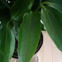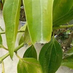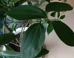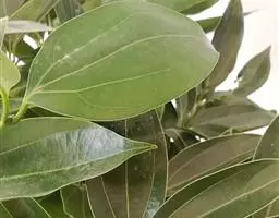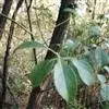 枝条圆柱形,淡褐色,无毛。叶互生,卵状椭圆形,长6-12厘米,宽2.5-5.5厘米,先端急尖,基部宽楔形至近圆形,边缘全缘,软骨质,有时呈微波状,上面绿色或黄绿色,有光泽,下面黄绿色或灰绿色,晦暗,两面无毛或下面幼时略被微柔毛,具离基三出脉,有时过渡到基部具不显的5脉,中脉两面明显,上部每边有侧脉1-3-5(7)条。基生侧脉向叶缘一侧有少数支脉,侧脉及支脉脉腋上面明显隆起下面有明显腺窝,窝内常被柔毛;叶柄纤细,长2-3厘米,腹凹背凸,无毛。