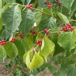 蓝叶忍冬是忍冬科忍冬属落叶灌木;茎丛生,较粗壮,直立;幼枝中空,皮光滑五毛,…