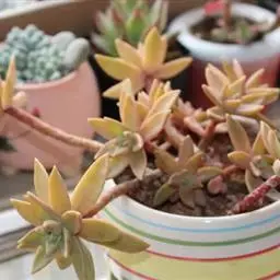 铭月是景天科景天属的多年生亚灌木。多分枝,茎蔓生或直立,高约10-30厘米。…