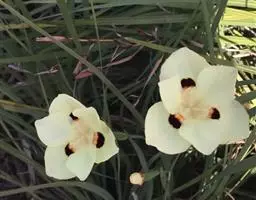 双色野鸢尾为多年生草本植物,叶子呈剑状淡绿色。…