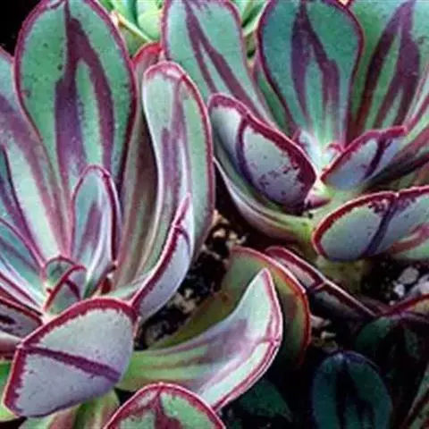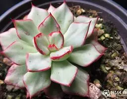 红缘莲花掌属蔷薇目、景天科植物,原产大西洋的加那利群岛。质厚,蓝绿色,被白霜,叶缘红褐色。聚伞花序,…