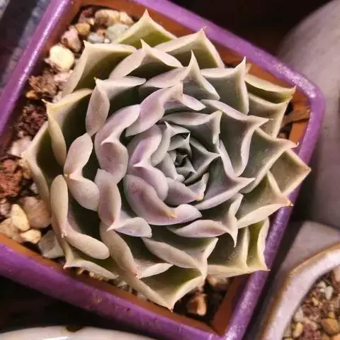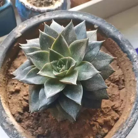 大和锦是景天科拟石莲花属的多肉植物。肉质叶排成紧密的莲座状,广卵形至散三角卵形,背面突起呈龙骨状,…