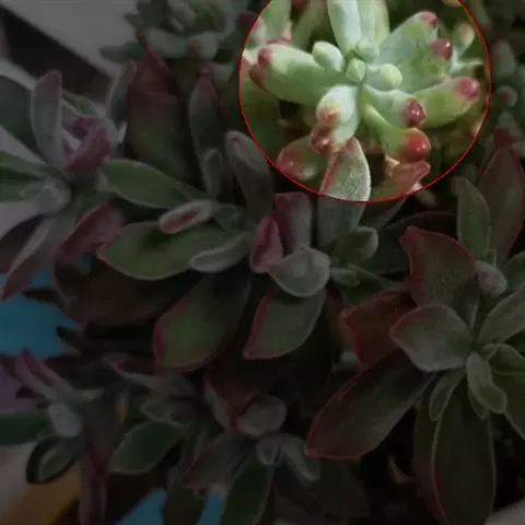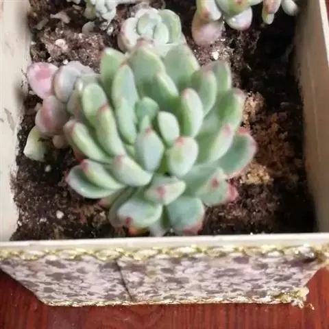 紫珍珠是景天科石莲花属的多年生肉质草本植物。植株中小型;叶片肉质,匙形,呈莲座状紧密排列;叶片粉紫色,…