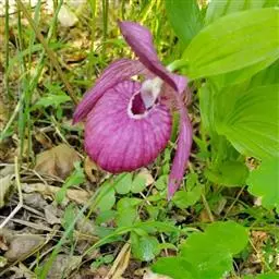 大花杓兰因其形状酷似一个口小肚大的囊袋,又名“大口袋兰”。花体呈紫红色,花朵直径5厘米至6厘米,…