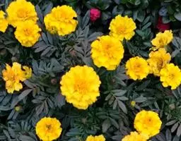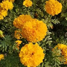 万寿菊是菊科万寿菊属一年生草本植物,别名孔雀菊、缎子花、臭菊花、西番菊、红黄草、小万寿菊、臭芙蓉、孔雀草。万寿菊茎近基部分枝。叶羽状分裂,长5-10厘米,宽4-8厘米,裂片长椭圆形或披针形,具锐齿,上部叶裂片齿端有长细芒,叶缘有少数腺体。头状花序单生,径5-8厘米,花序梗顶端棍棒状。总苞长1.8-2厘米,径1-1.5厘米,杯状,顶端具尖齿。舌状花黄或暗橙黄色,长2.9厘米,舌片倒卵形,长1.4厘米,基部成长爪,先端微弯缺。管状花花冠黄色,长约9毫米,冠檐5齿裂。瘦果线形,被微毛;冠毛有1-2长芒和2-3短而钝鳞片。花期7-9月。万寿菊中国各地均有栽培,在广东和云南南部、东南部已归化,国外原产墨西哥。万寿菊对土壤要求不严,但以肥沃疏松排水良好的土壤为好。耐移栽,种子发芽适温21-24℃,植株生长适合温度为20-29℃。喜温暖和阳光充足的环境,不