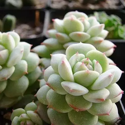花乃井是景天科拟石莲花属的多肉植物,原产于墨西哥。株型小巧,叶片饱满,在阳光充足、温差大的环境下叶…