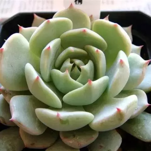 吉娃莲,景天科拟石莲花属,别名:吉娃娃,吉娃莲,植株小型,无茎的莲座叶盘非常紧凑。卵形叶较厚,带小尖,…