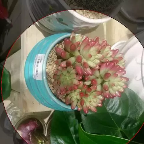 小红衣是景天科、拟石莲花属的一种多肉植物。叶片匙形,扁平细长,叶表具白粉,有明显的半透明边缘,…