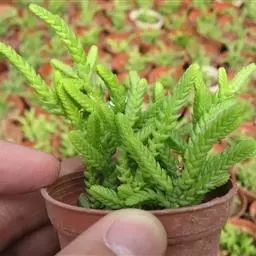 薄雪万年草别名矶小松,景天科景天属多年生草本植物,其细小的蓝绿色棒状叶片环绕生长于茎端,…