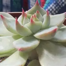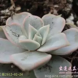 小红衣是景天科、拟石莲花属的一种多肉植物。叶片匙形,扁平细长,叶表具白粉,有明显的半透明边缘,…