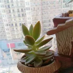 观音莲,隶属景天科,长生草属。因其形似绿色莲花的端庄造型和较易成活、繁殖的特性受到许多花卉爱好者的青睐。株型较大且向外张开,稍扁平,通常直径5-7厘米。匍匐茎短且壮,可达4厘米。幼株叶子较少。