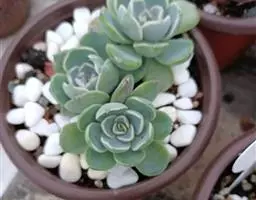 吉娃莲,景天科拟石莲花属,别名:吉娃娃,吉娃莲,植株小型,无茎的莲座叶盘非常紧凑。卵形叶较厚,带小尖,…