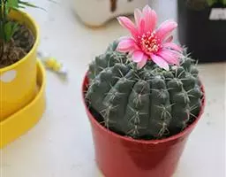 绯花玉 Speg.)是仙人掌科、裸萼球属多肉植物,植株呈扁球形,表皮墨绿色,刺针状,…