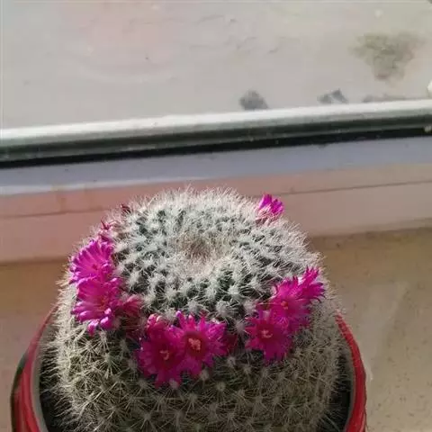 江守玉为仙人掌科强刺球属,植株扁圆形至球形,后成圆柱状,体色灰绿,刺座上附生白色绒毛,花橙黄色,漏…