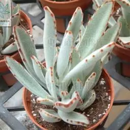 褐斑伽蓝是景天科、伽蓝菜属多年生肉质草本植物或小灌木。全株灰白色,密布白色茸毛。叶片长卵形,…