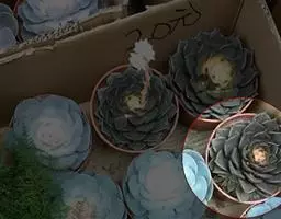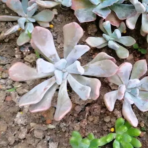 大和锦是景天科拟石莲花属的多肉植物。肉质叶排成紧密的莲座状,广卵形至散三角卵形,背面突起呈龙骨状,…