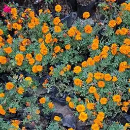 万寿菊是菊科万寿菊属一年生草本植物,别名孔雀菊、缎子花、臭菊花、西番菊、红黄草、小万寿菊、臭芙蓉、孔雀草。万寿菊茎近基部分枝。叶羽状分裂,长5-10厘米,宽4-8厘米,裂片长椭圆形或披针形,具锐齿,上部叶裂片齿端有长细芒,叶缘有少数腺体。头状花序单生,径5-8厘米,花序梗顶端棍棒状。总苞长1.8-2厘米,径1-1.5厘米,杯状,顶端具尖齿。舌状花黄或暗橙黄色,长2.9厘米,舌片倒卵形,长1.4厘米,基部成长爪,先端微弯缺。管状花花冠黄色,长约9毫米,冠檐5齿裂。瘦果线形,被微毛;冠毛有1-2长芒和2-3短而钝鳞片。花期7-9月。万寿菊中国各地均有栽培,在广东和云南南部、东南部已归化,国外原产墨西哥。万寿菊对土壤要求不严,但以肥沃疏松排水良好的土壤为好。耐移栽,种子发芽适温21-24℃,植株生长适合温度为20-29℃。喜温暖和阳光充足的环境,不