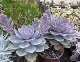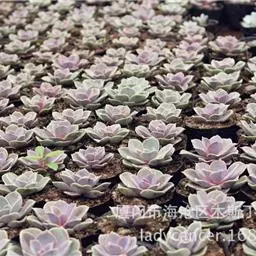 紫珍珠是景天科石莲花属的多年生肉质草本植物。植株中小型;叶片肉质,匙形,呈莲座状紧密排列;叶片粉紫色,…