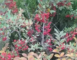 火棘 H. L. Li)是蔷薇科火棘属常绿灌木,老枝呈暗褐色;叶片呈倒卵形,边缘有钝锯齿,齿尖向内弯,…