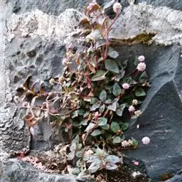 花序头状,顶生或腋生,基部常具1叶状总苞片,花序梗细长,上部具腺毛;苞片卵状椭圆形,通常无毛,边缘膜质,每苞内具1花;花梗比苞片短;花被通常4裂,淡紫红色或白色,花被片长圆形,长2-3毫米,顶端圆钝;雄蕊5-6, 与花被近等长,花药暗紫色;花柱2,下部合生,柱头头状。瘦果宽卵形,双凸镜状 ,长2-2.5毫米,黑色,密生洼点。无光泽,包于宿存花被内。花期5-8月,果期7-10月。