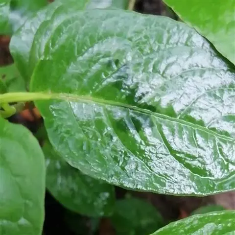 尼泊尔蓼,一年生草本。茎外倾或斜上,自基部多分枝,无毛或在节部疏生腺毛,高20-40厘米。茎下部叶卵形或三角状卵形,长3-5厘米,宽2-4厘米,顶端急尖,基部宽楔形,沿叶柄下延成翅,两面无毛或疏被刺毛,疏生黄色透明腺点,茎上部较小;叶柄长1-3厘米,或近无柄,抱茎;托叶鞘筒状,长5-10毫米,膜质,淡褐色,顶端斜截形,无缘毛,基部具刺毛。