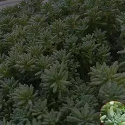 薄雪万年草别名矶小松,景天科景天属多年生草本植物,其细小的蓝绿色棒状叶片环绕生长于茎端,…