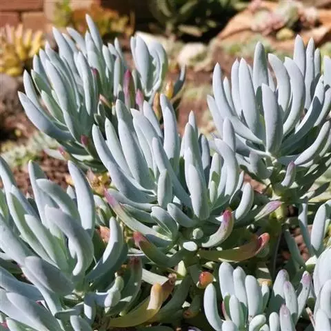 小红衣是景天科、拟石莲花属的一种多肉植物。叶片匙形,扁平细长,叶表具白粉,有明显的半透明边缘,…