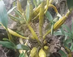 长叶山兰:假鳞茎椭圆形至近球形,有2-3节,外被撕裂成纤维状的鞘。叶2枚,偶有1枚,生于假鳞茎顶端…