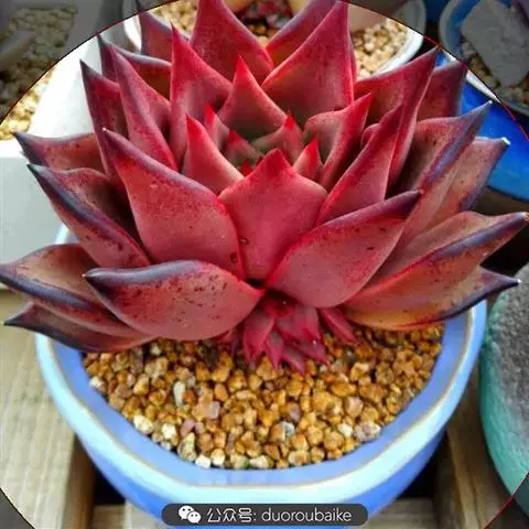 薄叶蓝鸟 叶片蓝绿色,叶尖红色,带粉,花型紧凑,非常漂亮。原产于墨西哥,现世界各地均有栽培。