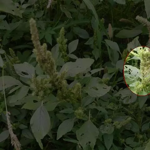 反枝苋是苋科苋属的一年生草本植物。株高达1米;茎密被柔毛;叶菱状卵形或椭圆状卵形,先端锐尖或尖凹,…